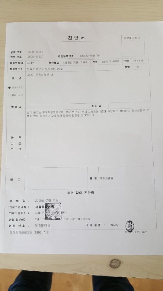 먼저 병원으로 진단받은 진단서내용을 아래와 같이 첨부합니다.